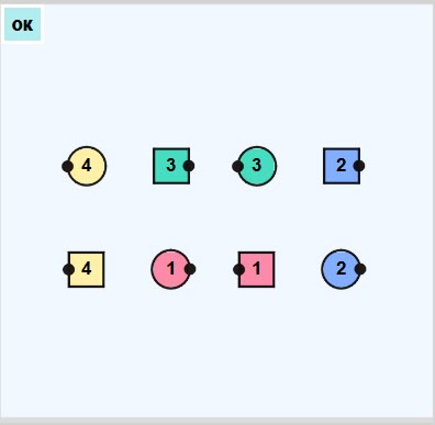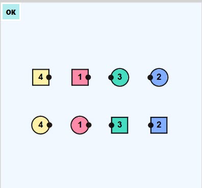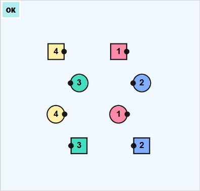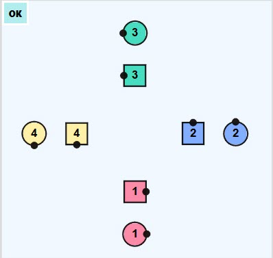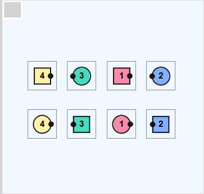 Facing direction is indicated by small black dots (their noses)