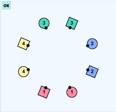 Couple Four (yellow) are to the Left of Couple One